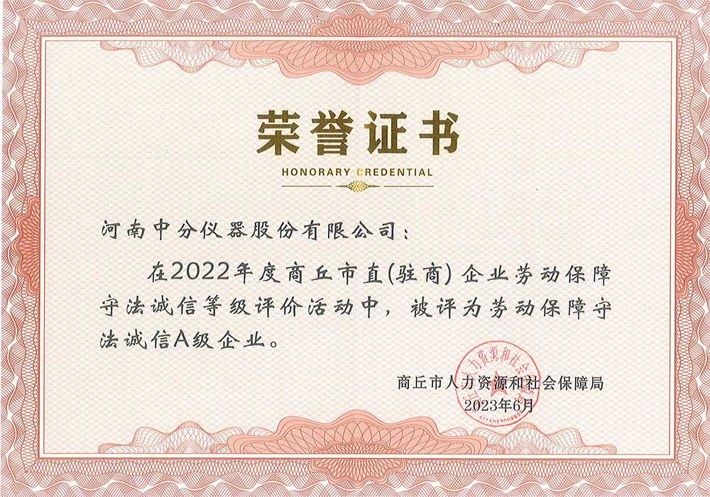 我公司近日獲得商丘市人力資源和社會保障局頒發的勞動保障守法誠信A級企業榮譽證書,這是對公司長期以來遵守勞動法律法規、維護勞動者權益、規范市場行為及保持良好社會形象等方面給予的充分肯定。