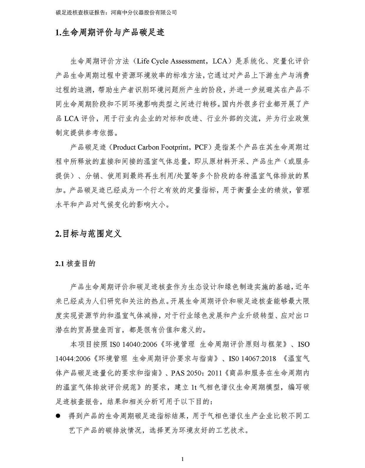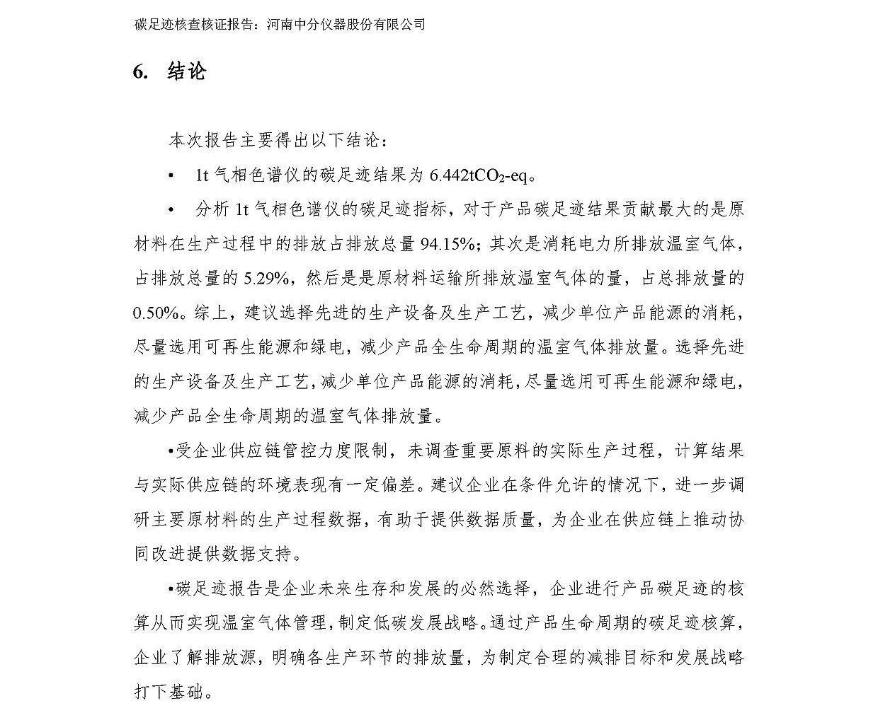 河南中分儀器股份有限公司2023年產(chǎn)品碳足跡核查報告